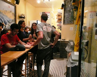 Ambiente: a lanchonete é minúscula e tem apenas dois apertados balcões com bancos para os sortudos que conseguirem sentar. Não foi o nosso caso. A opção foi comer na porta da lanchonete, em pé. Não há nem mesmo local para você apoiar a cerveja neste caso.